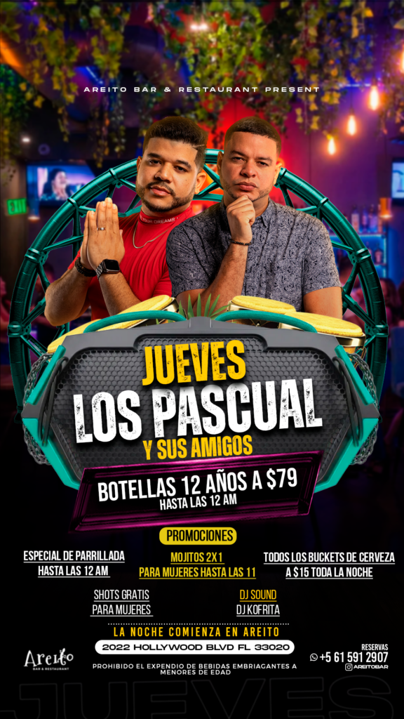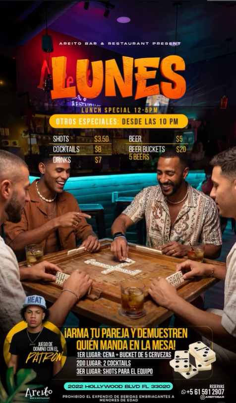 En Areíto Bar & Restaurant, cada semana es una fiesta de sabor, música y cultura. Descubre nuestros eventos fijos y ven a vivir la experiencia que nos hace únicos en Hollywood, FL.